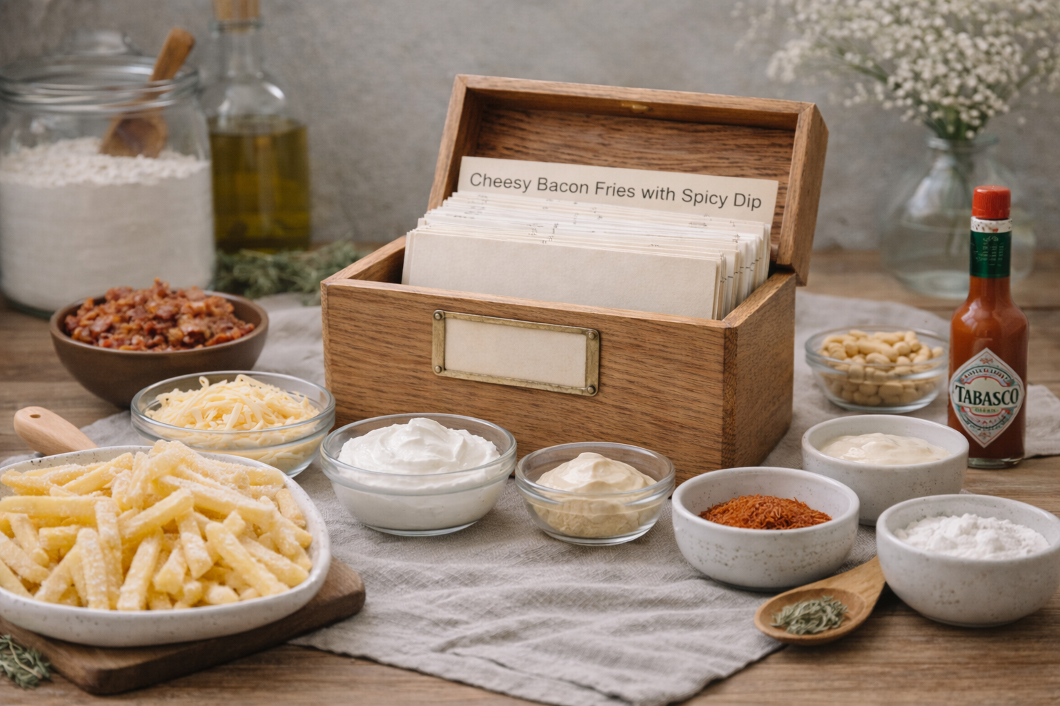 Cheesy Bacon Fries with Spicy Dip