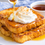 Pumpkin Spice French Toast with Christmas Syrup is a cozy, seasonal breakfast made with pumpkin purée, warm spices, and thick slices of Texas toast. Served with a rich homemade syrup, this French toast is perfect for fall mornings, holiday breakfasts, or special weekend brunches.