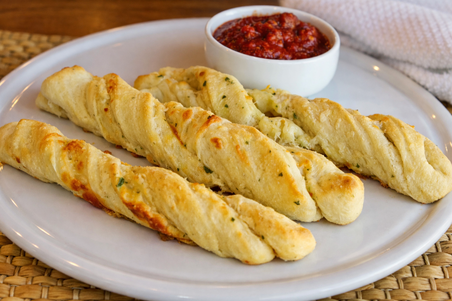 These twisty garlic breadsticks are simple to make and full of classic, comforting flavor. Using frozen bread dough keeps things easy while delivering soft, cheesy breadsticks that pair perfectly with pasta or marinara.